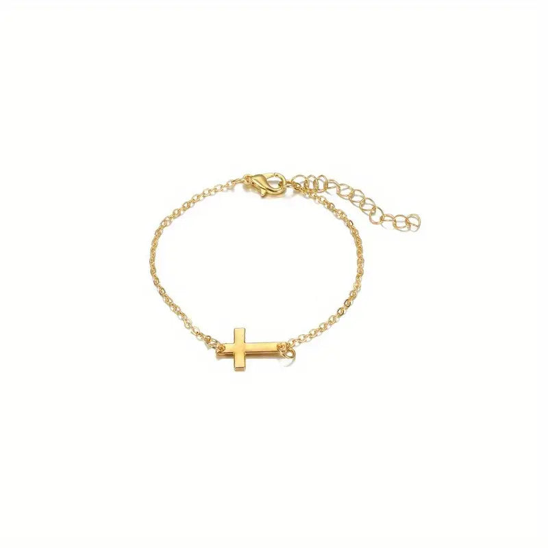 A golden cross bracelet with a sleek, vintage-inspired design. Crafted from lightweight, durable materials for all-day comfort. This unisex piece blends minimalist style with fine craftsmanship — perfect for casual looks, formal outfits, or year-round gifting. A versatile accessory for fashion lovers.