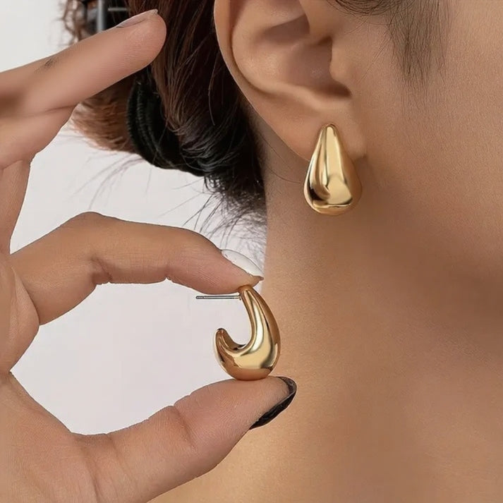 Elegant hollow water drop earrings crafted from high-quality stainless steel with a golden finish. Hypoallergenic and fade-resistant for lasting comfort. Their sleek silhouette transitions effortlessly from daily wear to party-ready style — a delicate gift for any occasion.